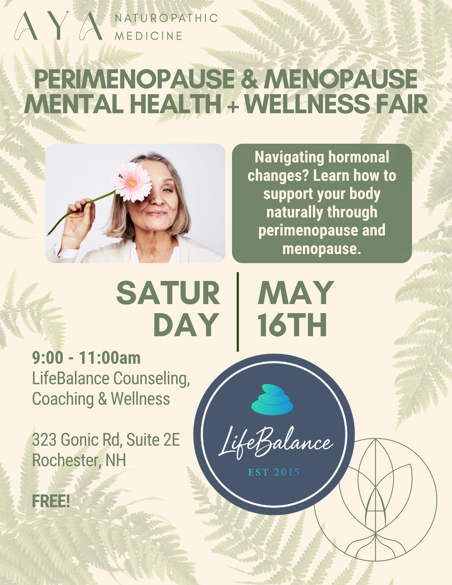 Perimenopause & Menopause Mental Health + Wellness Fair May 16 | 9:00 – 11:00 AM LifeBalance Counseling, Coaching & Wellness 323 Gonic Rd, Suite 2E, Rochester, NH Join us for […]